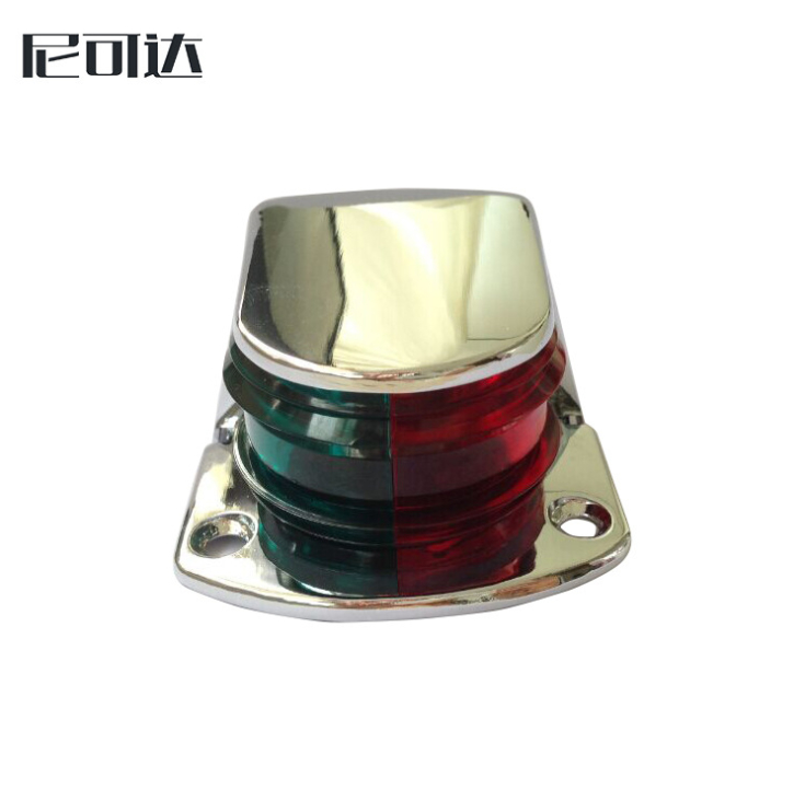 This compact horizontal-mount bi-color bow navigation light features red and green illumination encased in a sleek chrome-plated housing. Built for marine durability, it resists corrosion and runs on a #90, 12V bulb.